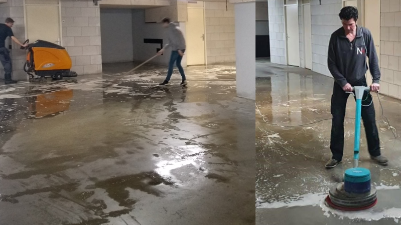 NH Facilitair heeft deze garagevloer volledig mogen diepreinigen in opdracht van een VvE. Volgens de voorzitter van de VvE was de vloer minimaal 5 tinten lichter. Al met al een bevredigende klus.
