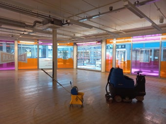 In een groot winkelgebied in Lelystad was deze bovenverdieping al jaren verlaten. Er lagen op een groot gedeelte van de vloer verlijmde tapijttegels. De ruimte was niet goed afgesloten, waardoor honderden duiven zich konden vestigen en de ruimte konden vervuilen. Met inzet van personeel, extra zzp'ers en een asbestsaneerder werd er groots ingezet om de ruimte leeg te ruimen, de tapijttegels te verwijderen en alles schoon te maken. Vervolgens zijn alle gaten en kieren gedicht om de duiven voorgoed buiten te sluiten.